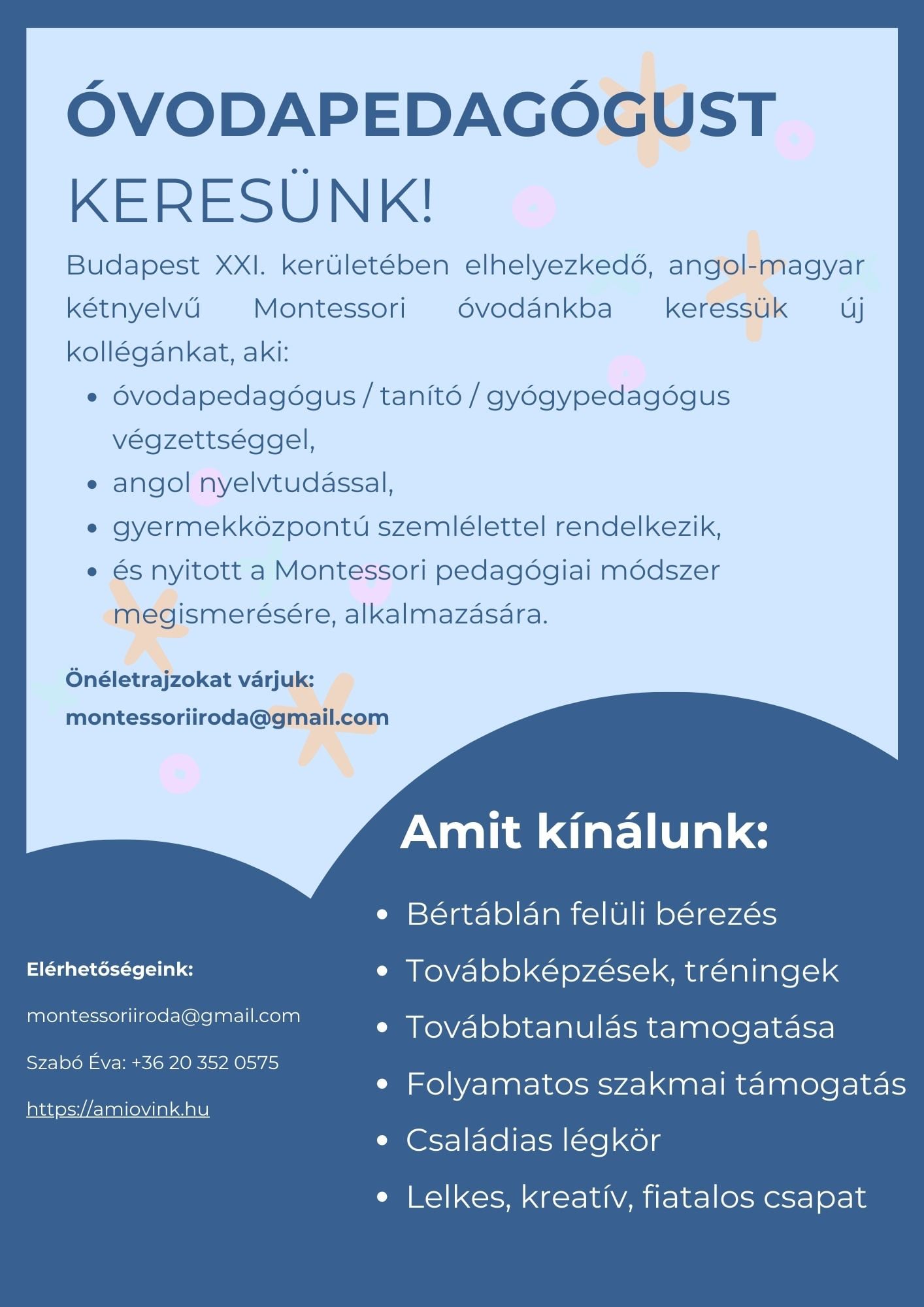 Intézmény alapító, fenntartó / szakmai vezető / Montessori óvodapedagógus